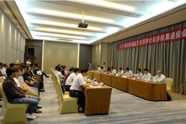 9月13日下午,2018阜阳机场航空安保审计初步结果通报会在万达嘉华酒店举行。会议由民航华东管理局航空安保审计组组长、民航安徽监管局空防处处长骆军主持。骆军处长通报了阜阳机场航空安保审计初步审计结果,民航局局长王朝东发表感言,阜阳市政府副秘书长董中续、民航安徽监管局党委副书记、纪委书记董伟就进一步做好航空安保工作提出要求。
