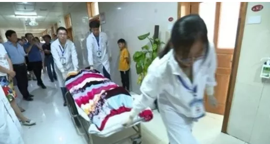 被亲人从地上拉起后