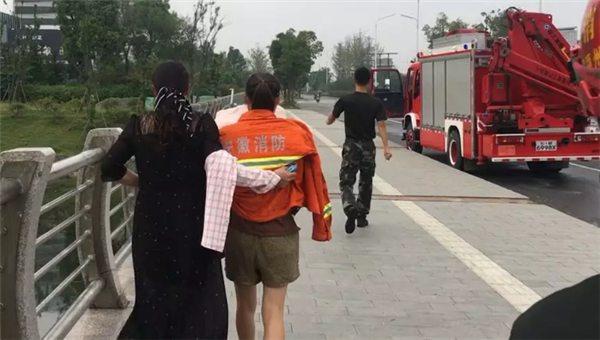 幸运的是,消防员到场时,一位热心市民已经下水把女子救了上来。在岸边的市民向我们讲述了惊魂一瞬。