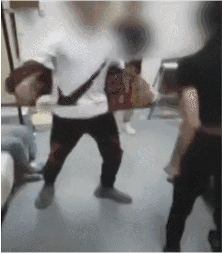 视频中,小杰先是遭到两个赤裸上身的同学拳打脚踢,期间虽有其他同学劝阻,但是两人仍不停手,用拳头反复击打小杰头部,小杰全程抱头躲避。
