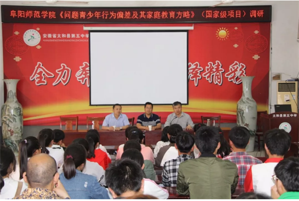 2018年5月10日,阜阳师范学院国家级创新训练项目《问题青少年行为偏差及其家庭教育方略》及《皖西北农民工“留守”子女情感教育实践调查》课题组成员在教育学院葛西强书记、汪杰锋教授的带领下赴太和五中开展调研活动。