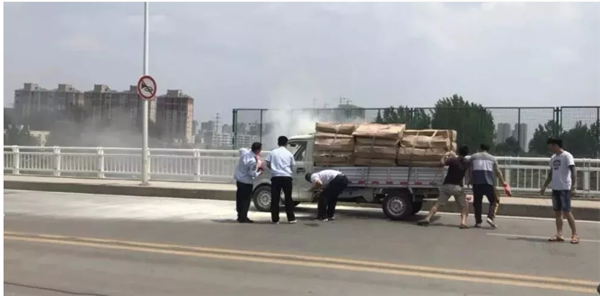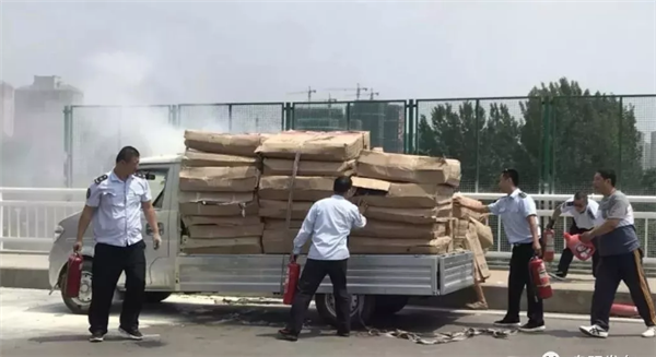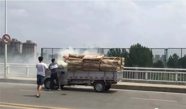 阜阳一货车桥上着火,危急时刻突现20罐灭火器-阜阳信息网