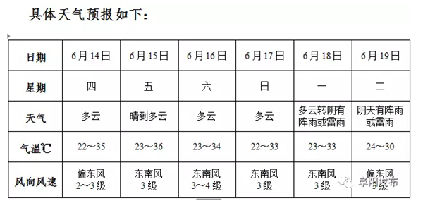 预计18日前我市以晴到多云天气为主,18-19日我市将有一次降水过程。16日我市前最高气温在35℃左右,局地最高气温可达37℃左右,高温时段尽量减少户外活动,注意防范因用电量过高、电力负载过大而引发的火灾等。