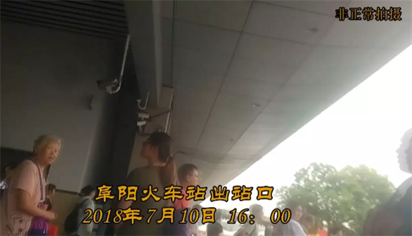 7月10日下午,效能督查组在阜阳火车站出站口门前看到的不文明拉客行为,只见几名群众手持写有县城名称的卡片,一边挥舞,一边向出站的旅客大声吆喝,试图拉客。