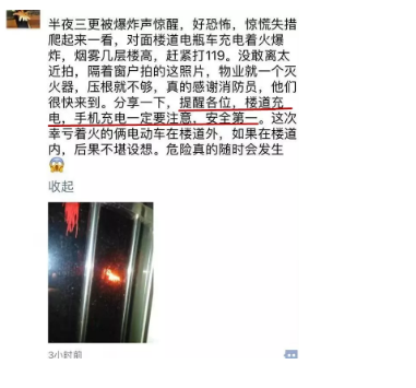 27日凌晨2点多钟就在大家睡得正香时,“砰”的一声巨响,把阜阳开发区丽景佳苑的业主们。从睡梦中“惊”醒,大家慌忙爬起来一看,都惊呆了!只见73栋楼单元楼道口,火光冲天、烟雾弥漫,火苗蹿到四层楼高!大家